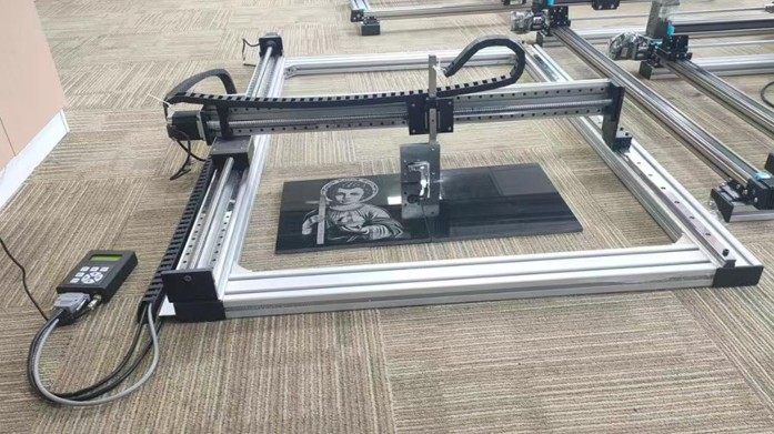 Este equipo de grabación de piedra 2D por impacto, permite realizar unos trabajos de gran calidad y precisión, en un tiempo reducido. A destacar la sencillez de su diseño, sin restar resistencia y robustez. Los diseños se pasan a la consola de control mediante una tarjeta SD. Puede trabajar con una amplia gama de materiales, desde piedra natural, granito, mármol,.., hasta piedras artificiales o sintéticas, sin olvidar el vidrio. Para una mejor visualización, se recomienda trabajar sobre materiales oscuros, ya que el efecto visual será mucho mayor, tal y como puede observarse en los ejemplos.