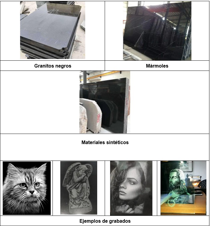 | Materiales que se pueden procesar | Granito, mármol, vidrio, basalto,… | ||